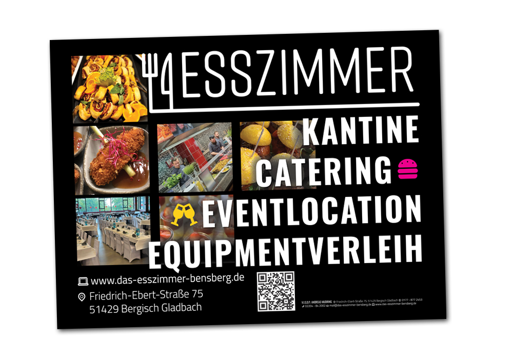 Für das Esszimmer in Bensberg habe ich große Plakate gestaltet, die in ganz Bergisch Gladbach aufgehängt werden, um so auf das Catering-Angebot aufmerksam zu machen.